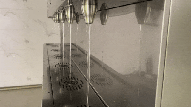 此次校園共配備戴思樂®校園凈飲水設備8臺,搭載反滲透負壓勻柔流專利技術,確保出水純凈,水流穩(wěn)定;采用“兩開四溫”可調(diào)模式(開水配“童鎖”功能),每臺設備設有6個出水嘴,且均配置紫外消毒功能;同時,接水臺還加裝防濺面板,構建安全、健康的接飲水環(huán)境。