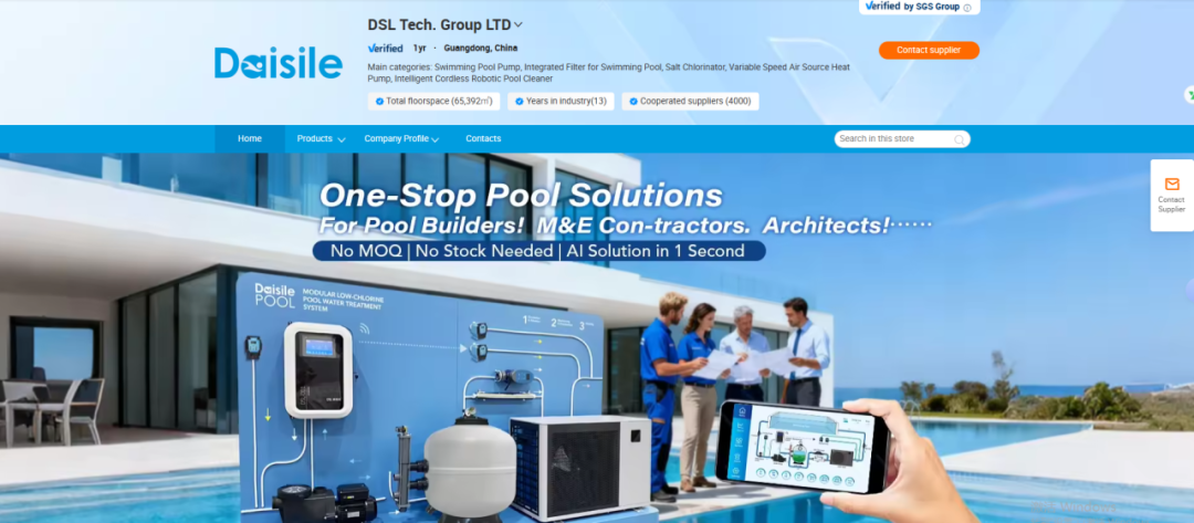 2025年,戴思樂入駐阿里巴巴國際站,以跨境電商模式拓局全球市場。平臺上線的產品系統解決方案,囊括低氯泳池系統、智能泳池系統、智能水質在線監(jiān)測設備及智能無線泳池清潔機器人等,全面打造出海“拳頭產品矩陣”。此舉標志著戴思樂在品牌全球化布局與數字化營銷轉型的進程中,邁出了關鍵一步。